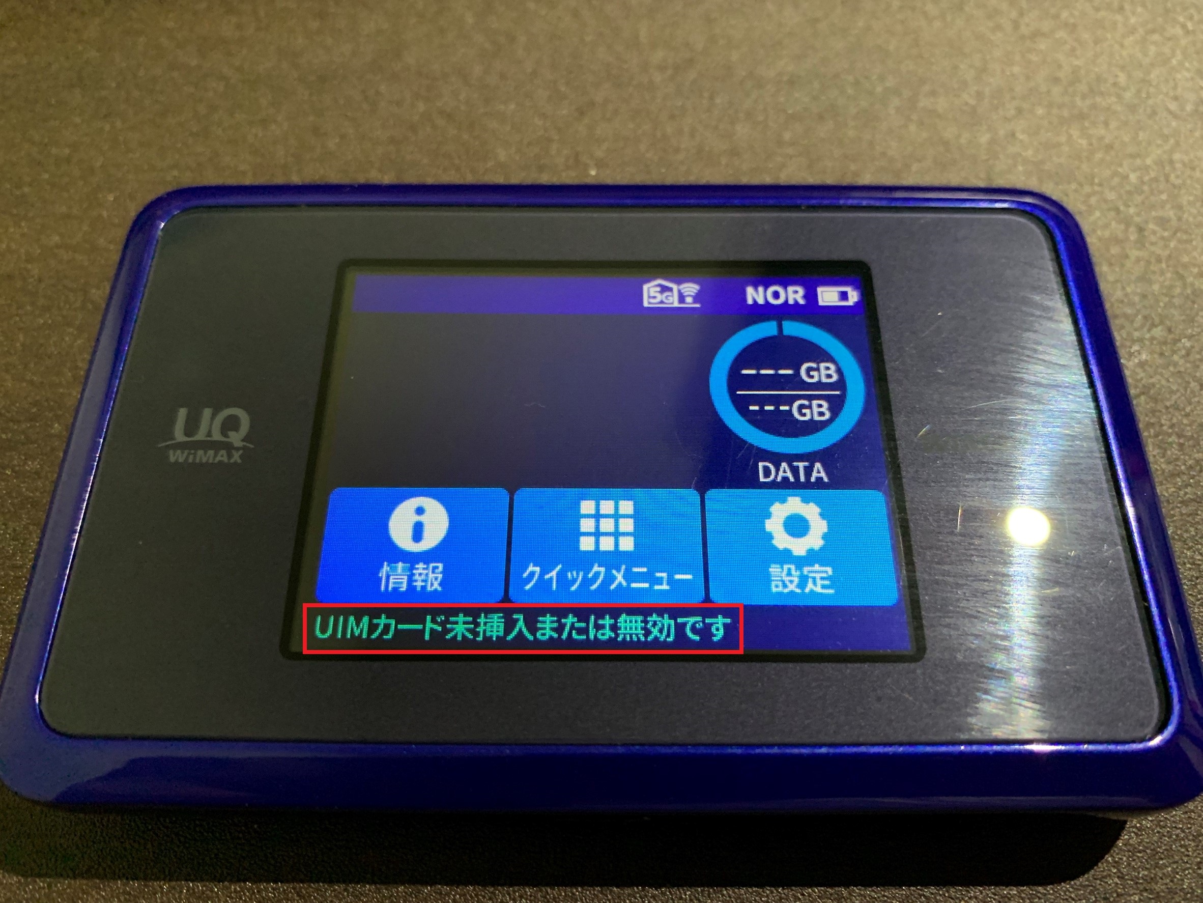 元々の黒色SIMを差し戻してみるとUIM…の文章は表示なしでした。