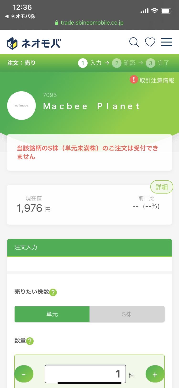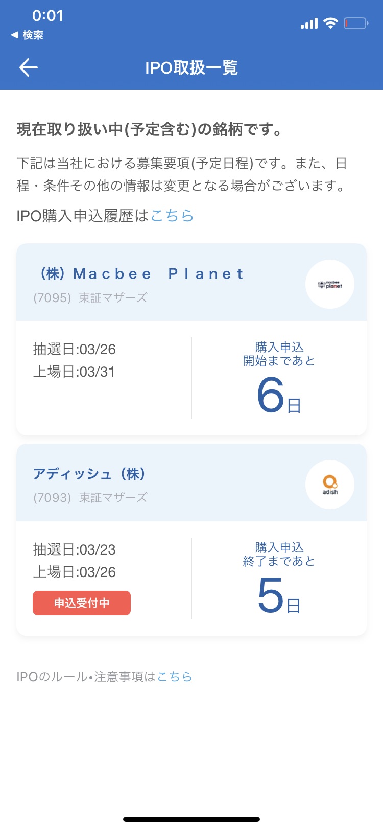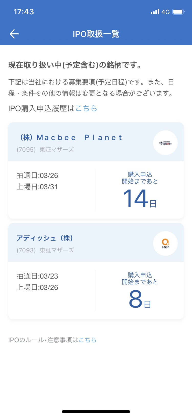 ③申込日になると申込受付中が表示、あとは通常と同じ様に購入します。購入上限は99株です。