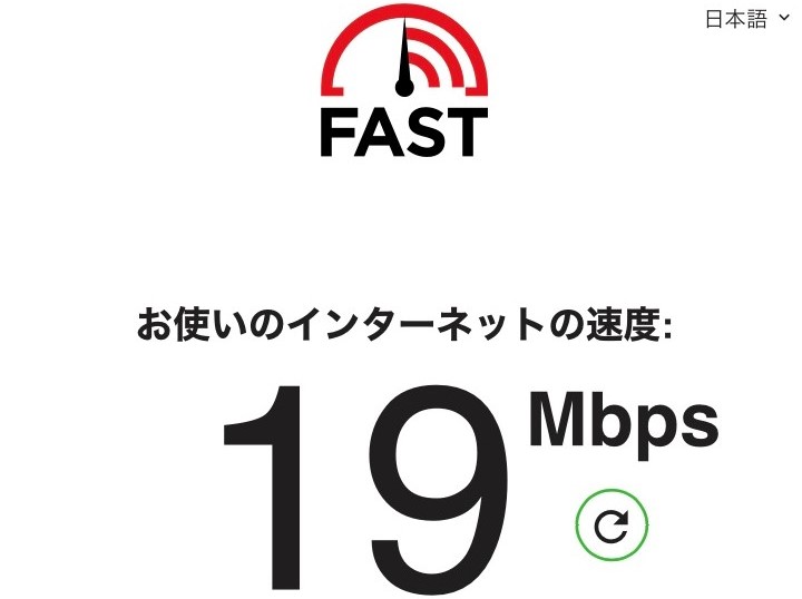 19Mbpsでした!5GB超過後もこの速度であれば楽天回線を使えていることになります。